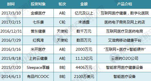 早在2007年,雷军的个人天使投资机构顺为创投就向好大夫在线送出300万人民币的天使轮投资;雷军发起的顺为基金也曾在2012年向丁香园送出数千万美元的B轮融资;2014年1月,小米投资以小米手环为主的华米科技;2014年9月,小米2500万美元投资九安医疗iHealth占股20%;2016年小米再次投资智能医疗硬件领域。
